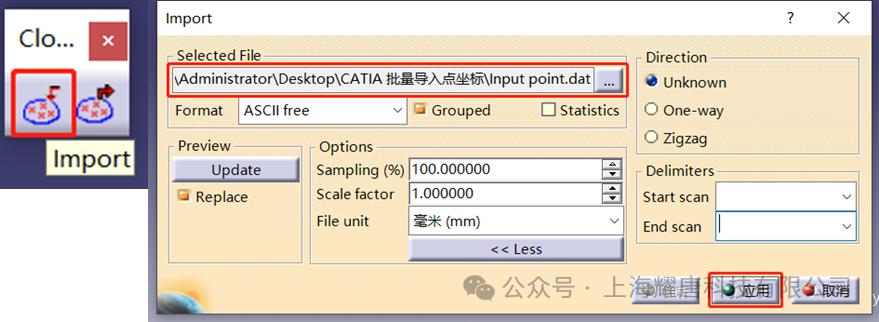 选择Cloud import工具条的Import命令,导入Step1准备的.dat文件。
