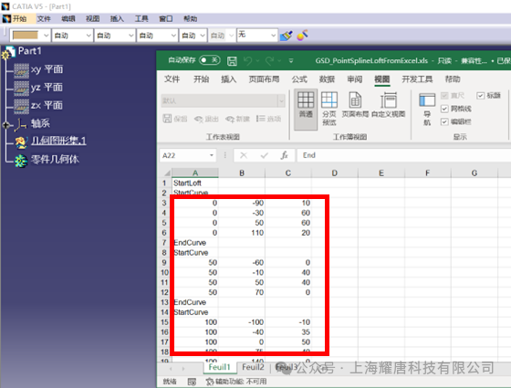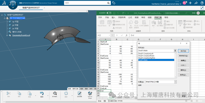 按照导入CATIA V5同样的步骤,执行此excel文件内的宏程序也能得到相同的效果。