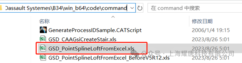 在3DEXPERIENCE CATIA安装路径下,也存在一个GSD_PointSplineLoftFromExcel.xls文件。
