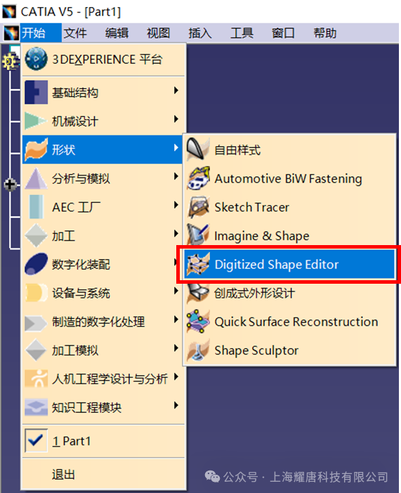 只需通过Mechanical & Shape Engineer角色下的Digitized Shape Preparation app 执行对应操作即可。